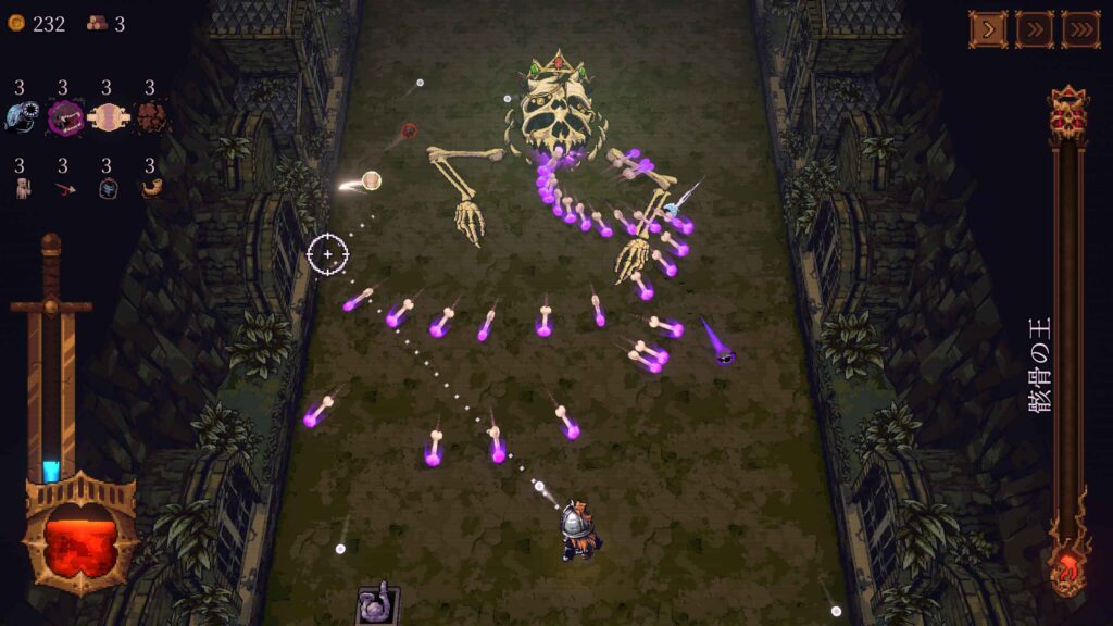 一方で敵を倒すと経験値を落とし、それを集めてレベルアップすると3択でパワーアップしていくのは『ヴァンサバ』風。これは本作の本質ではなく、リプレイ性や中毒性に寄与するエッセンスの役割。