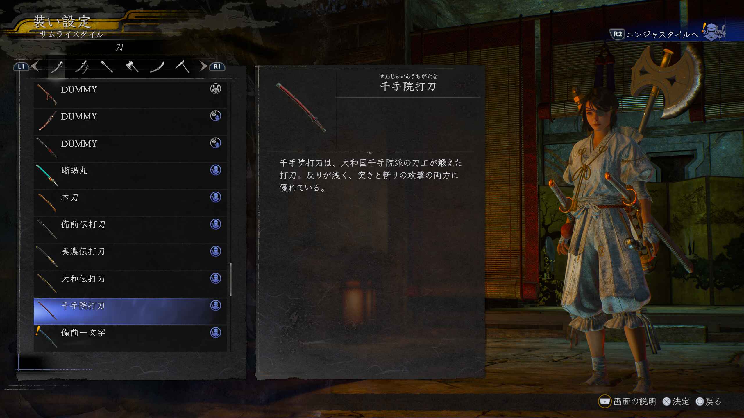 公式アプデ後は刀と二刀流をサムライニンジャお互いに設定可能なMODとなってます。ただし、DUMMYデータもあるのでマルチで使うのは危険かもしれません。